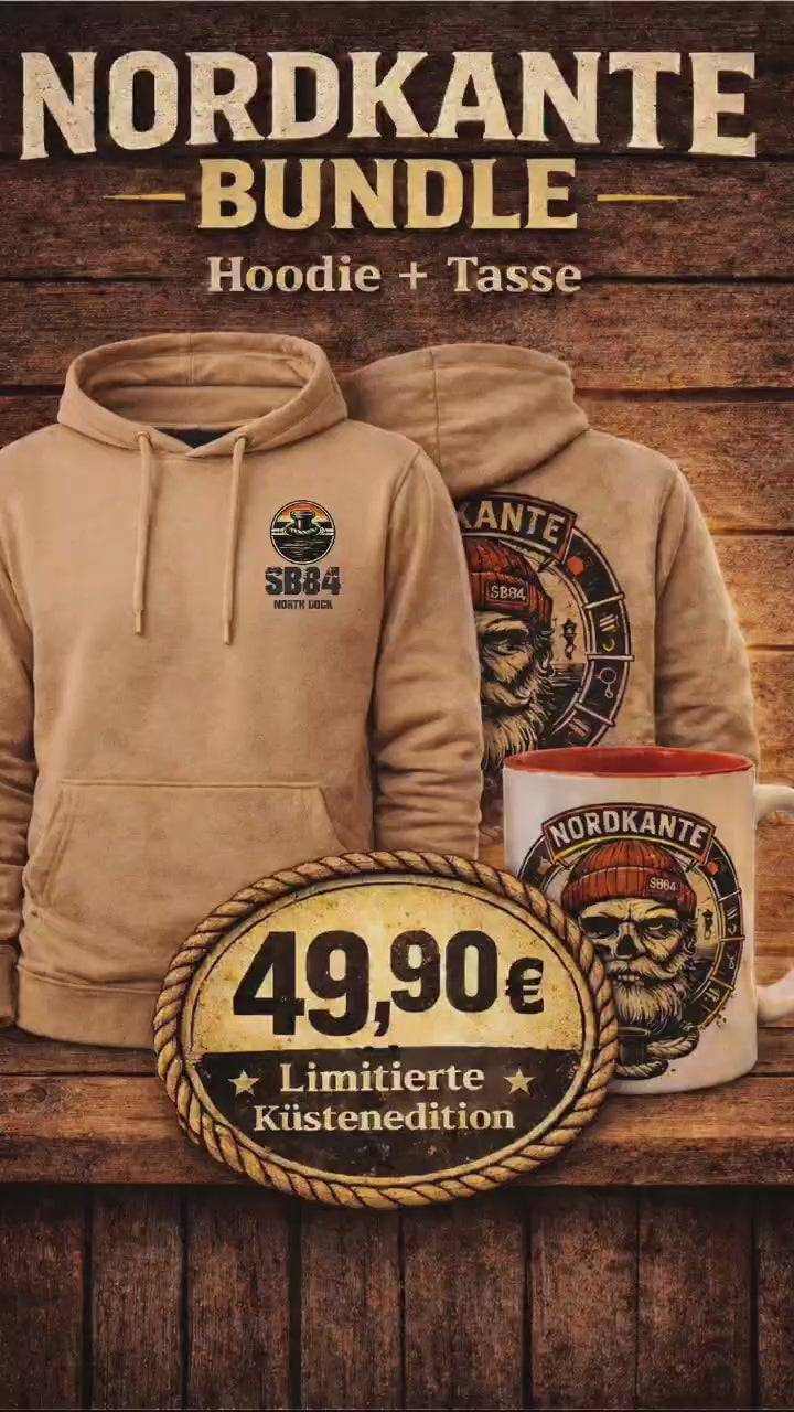 Hör mal zu, Landratte. Wir wissen beide, dass du morgens vor dem Spiegel stehst und dir denkst: „Ein bisschen mehr Ausstrahlung wäre schön.“ Da wir aber keine Wunder vollbringen und deine Persönlichkeit nicht austauschen können, haben wir das NORDKANTE Bundle geschnürt.